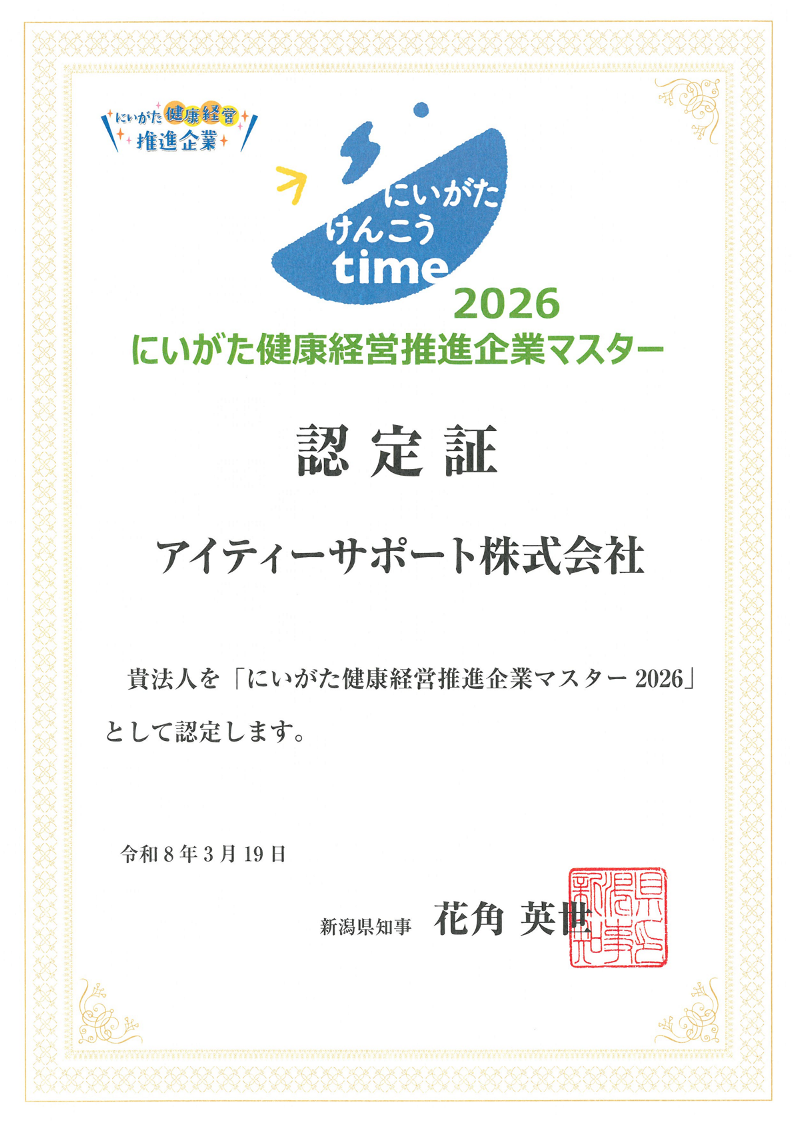 新潟県より「にいがた健康経営推進企業マスター2026」に認定されました